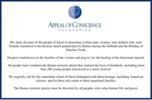 We share the pain of the people of Israel in mourning civilian men, women, and children who were brutally murdered in the heinous attack perpetrated by Hamas during the Sabbath and the Holiday of Simchat Torah. October 7, 2023
