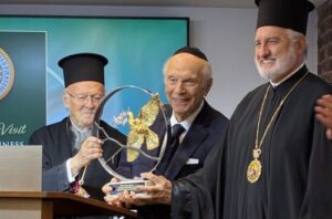 At a Farewell Luncheon His All-Holiness Ecumenical Patriarch Bartholomew for the conclusion of his Apostolic Visit to the U.S., Rabbi Arthur Schneier was also honored as a longtime friend of His All-Holiness, a distinguished human rights advocate, and Founder and President of the Appeal of Conscience Foundation. The event, held on Thursday, September 25, 2025, at Calamos Investments in New York City, was also attended by Archons John Calamos, John Koudounis and Yannis Sianis. September 7, 2025