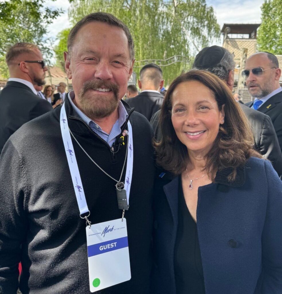 Karen Dresbach, EVP, Appeal of Conscience Foundation and Pastor Larry Huch of the New Beginnings Church were both at Auschwitz in May 2024 for the International Commemoration of Holocaust Remembrance Day