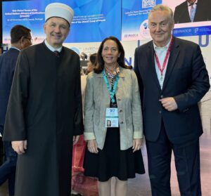 ACF EVP Karen Dresbach meets with H.E. Dr. Nedžad Grabus, Mufti of the Islamic Community in Slovenia, and H.E. Dr. Zlatko Lagumdzija, Permanent Representative of Bosnia and Herzegovina to the United Nations at the 2024 UNAOC Conference on Safeguarding Religious Sites in Cascais, Portugal.