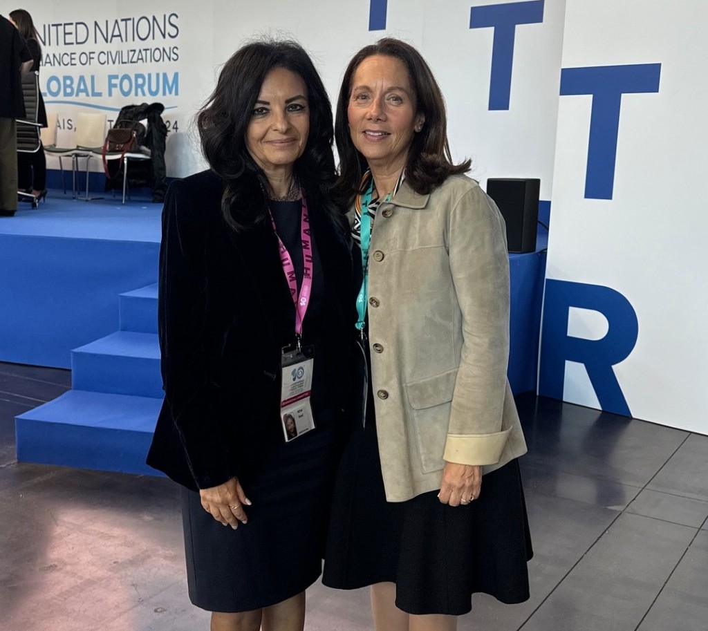 Ms. Nihal Saad, Director of the UNAOC, and ACF EVP Karen Dresbach at the 2024 UNAOC Conference in Cascais, Portugal.